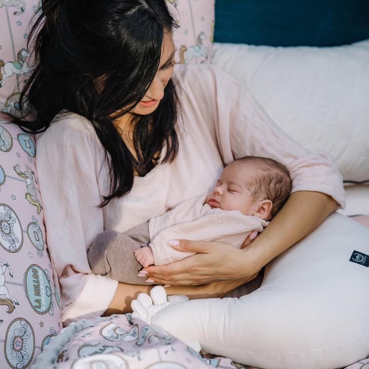 Den är perfekt som amningskudde eller som kudde för mamman under graviditeten.