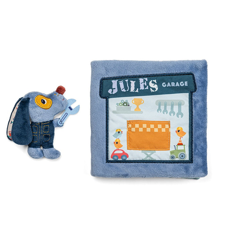 Den mjuka boken i serien med hunden Jules ingår också i en större kollektion från Lilliputiens – alla produkter med denna karaktär är fulla av fantasi, äventyr och värme.