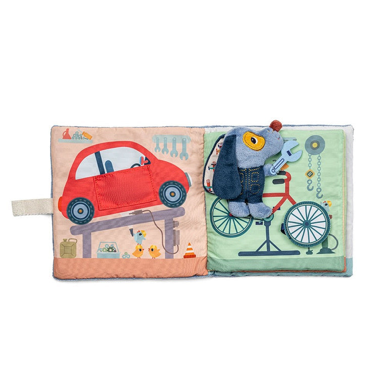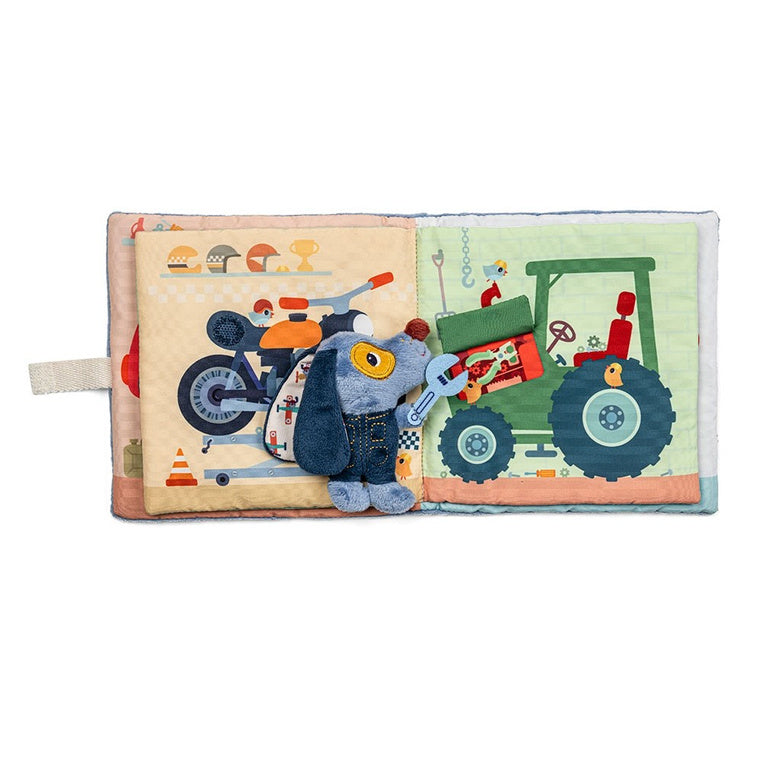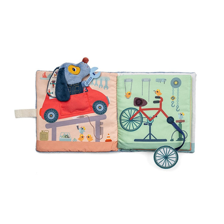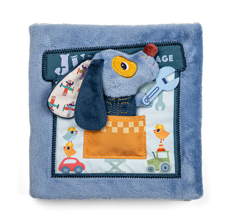 Den mjuka boken Jules Dog Garage från Lilliputiens är ett specialerbjudande för de små som just har börjat sitt äventyr med att lära sig läsa.