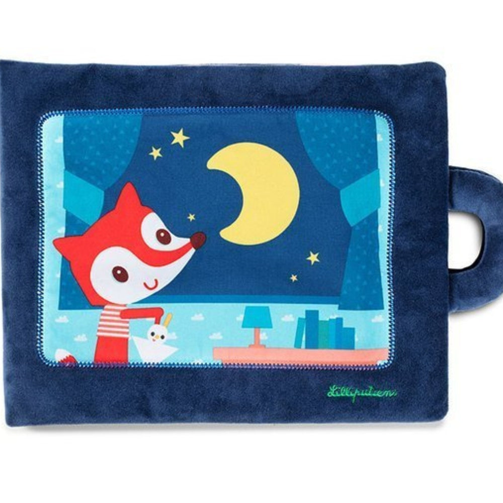 Den perfekta högläsningsboken för småbarn är sinnesboken "God natt, lilla räv", utgiven av det belgiska varumärket Lilliputiens.
