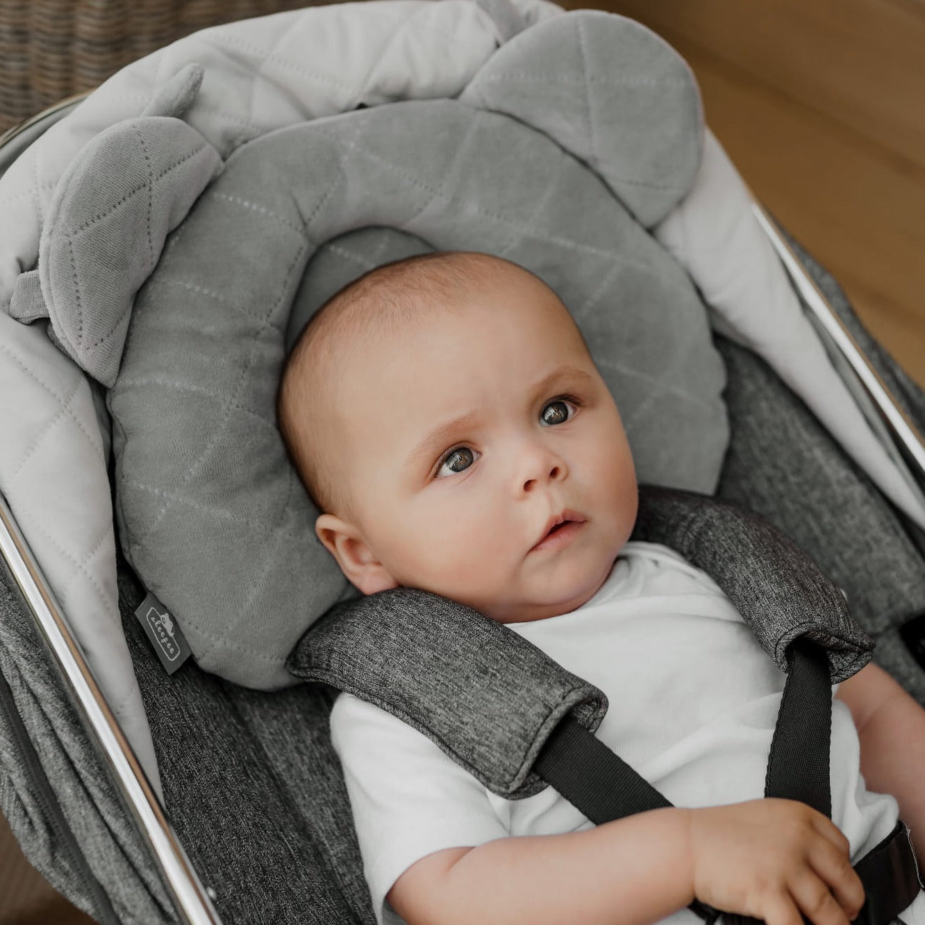 Den har en liten fördjupning i mitten som gör att barnets huvud vilar på de mjuka sidorna, vilket minskar trycket på ytan som det ligger på.