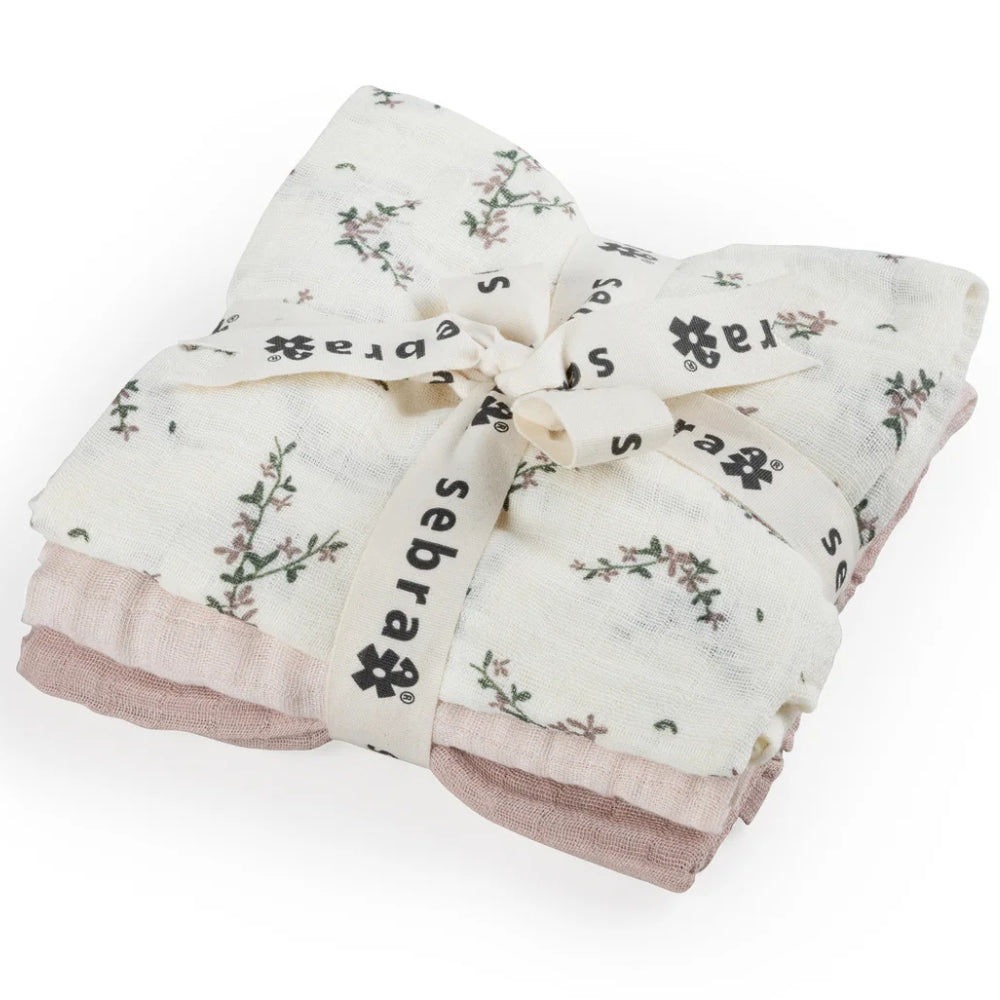 Sebra Muslin-blöjor 3 st. Powder blossom
