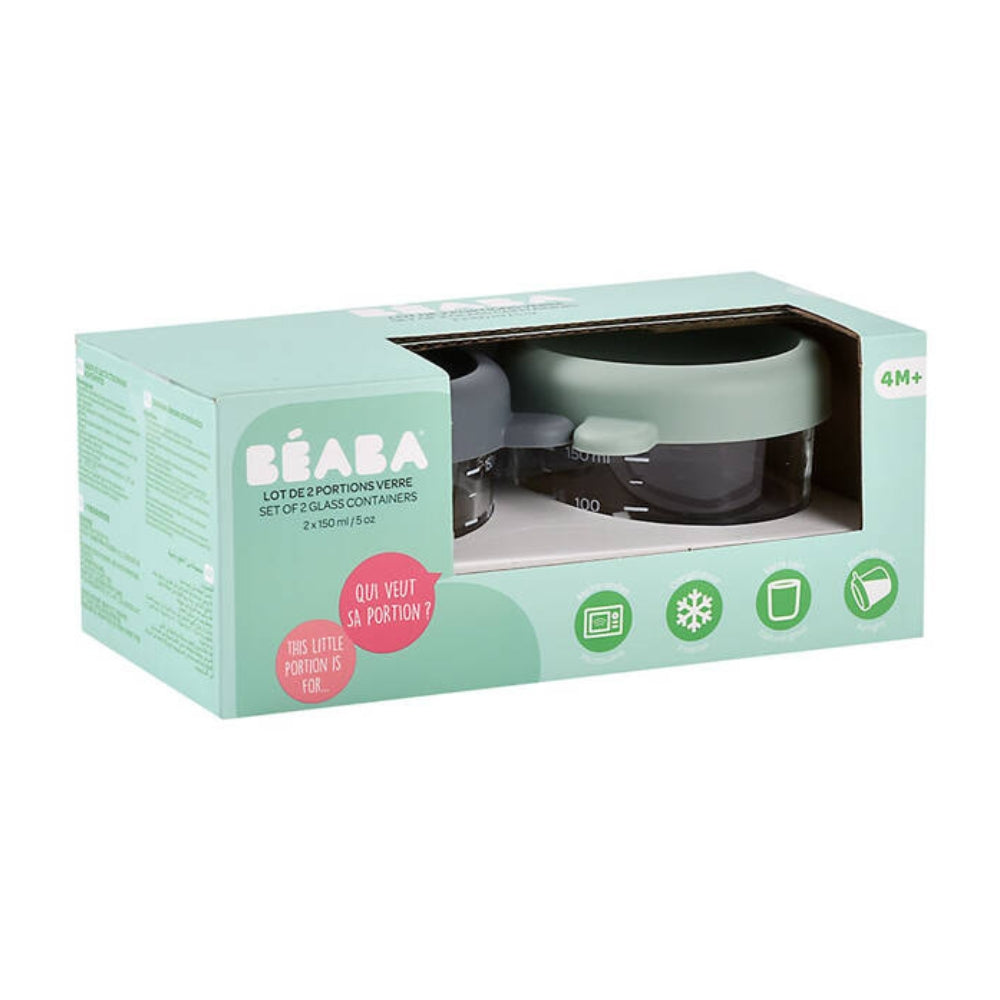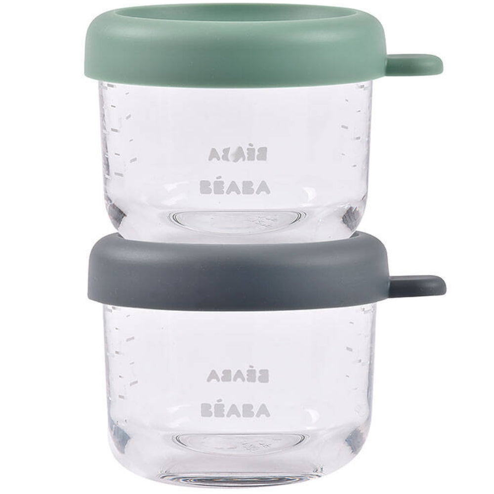 Beaba glasburk med lock 2 x 150 ml Mineral/Salviagrön