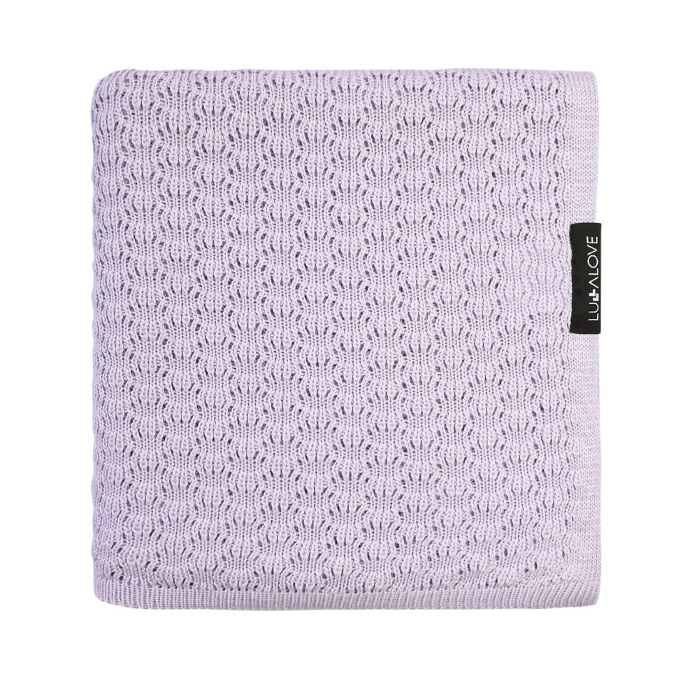 Lullalove lättviktig babyfilt i bambu i en vacker lavendelfärg med en genombruten väv som liknar hundratals små fjärilsvingar.