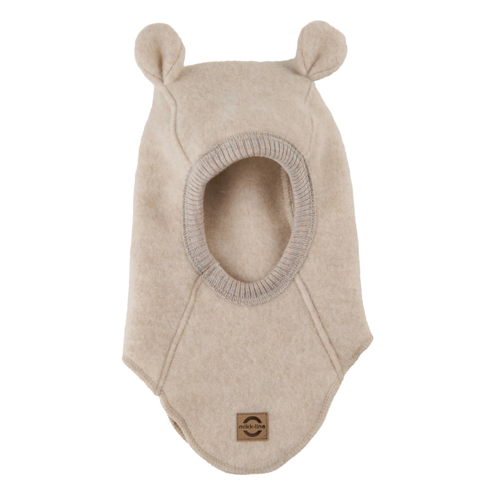 Mikk Line Balaclava i merinoull med öron för barn Melange Offwhite