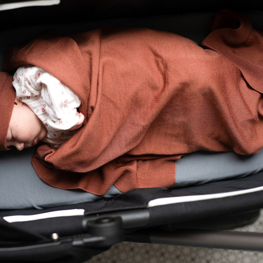 Barnvagnslakanet från Yarnami by Poofi är en kombination av naturmaterial, högkvalitativt hantverk och exceptionell komfort för barnet.