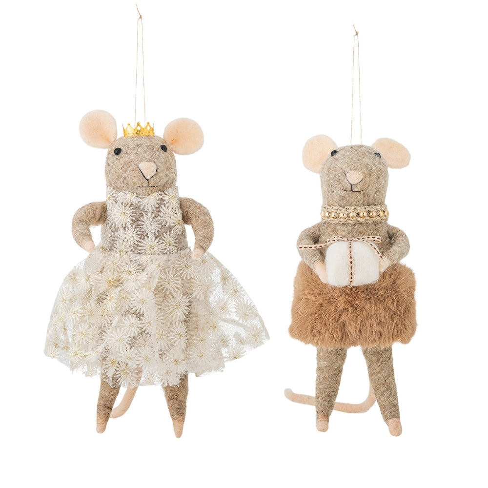 Setet med två filtade möss av ull imponerar med fina detaljer som ger dekorationerna en speciell touch.