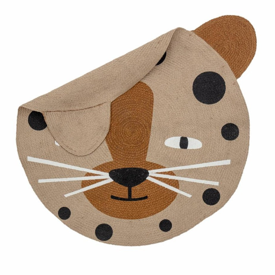 Mattan är formad som en leopard med små öron.