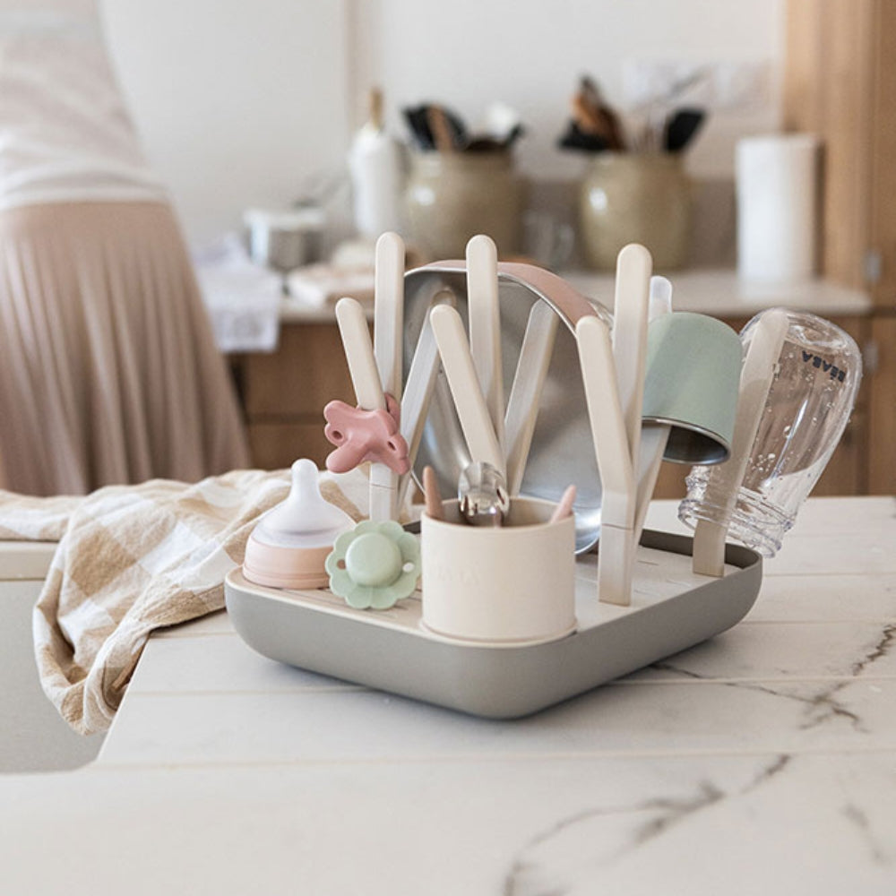 Diskstället från Beaba är en praktisk och estetiskt tilltalande lösning som gör det enkelt att torka flaskor, matningsredskap och små tallrikar varje dag.