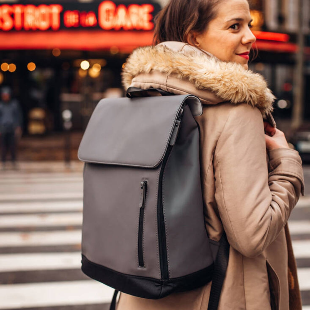 Den minimalistiska formen, de klassiska färgerna och den lätta konstruktionen gör den till den perfekta ryggsäcken för föräldrar som vill ha allt till hands.