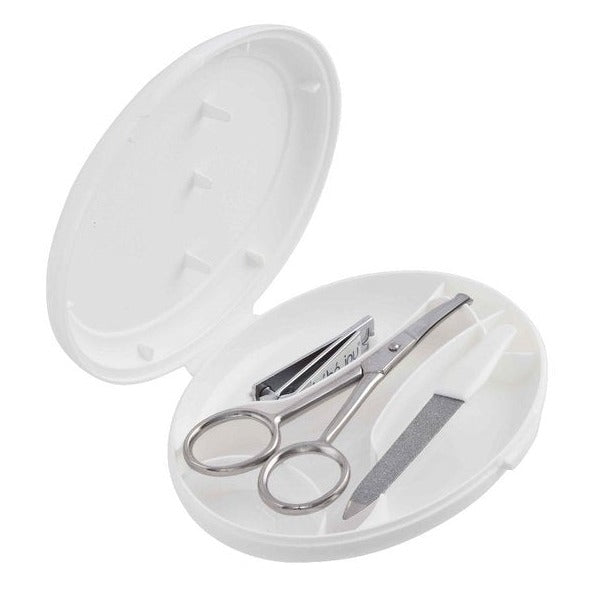 Bébé-jou nagelvårdsset innehåller mycket bekväma och precisa saxar av rostfritt stål, en nagelklippare och en liten fil.