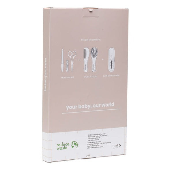 Bébé-jou-vårdsetet är förpackat i en snygg och praktisk låda.