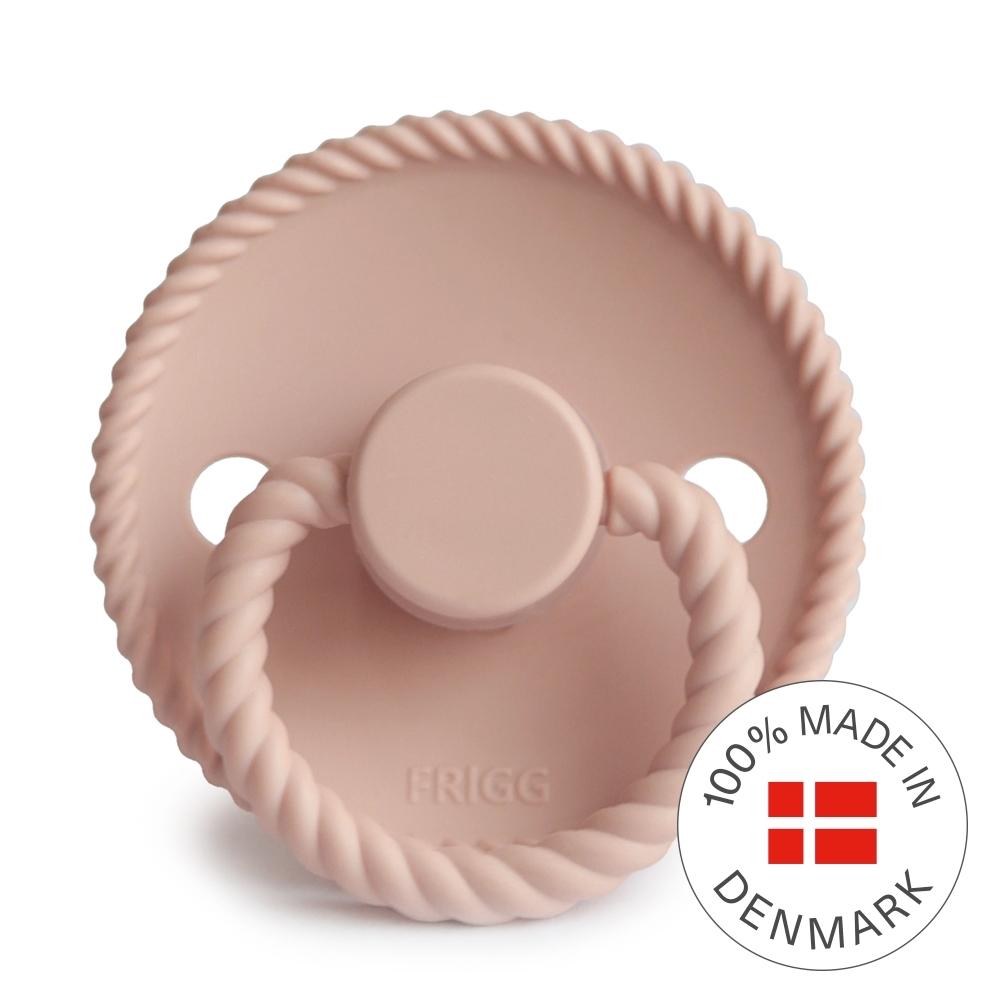 Den runda silikonnappen Frigg Rope Blush 6+ har en vågig kant som efterliknar blomblad.