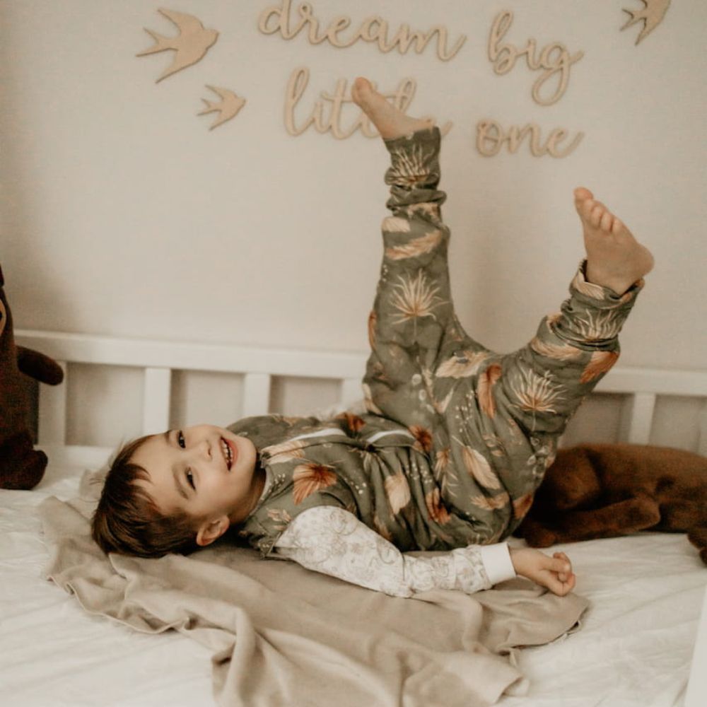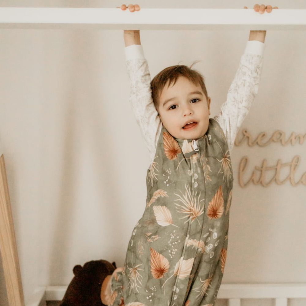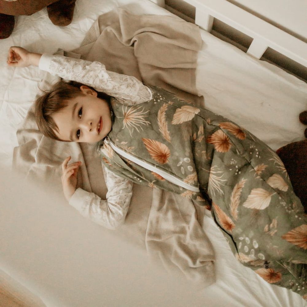 Sleepee dubbelsidig sovsäck med ben bohemisk grön bohemisk botanisk 1-2 år
