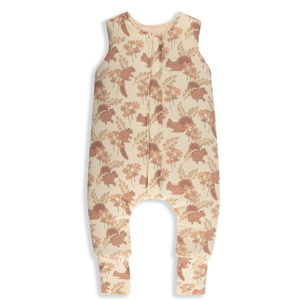 Innovativ dubbelsidig sovsäck med ben Vintage Animals Almond/Cream från Sleepee.