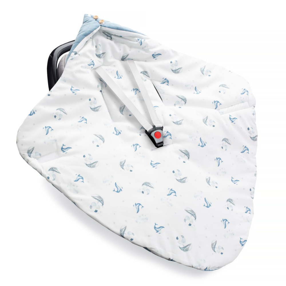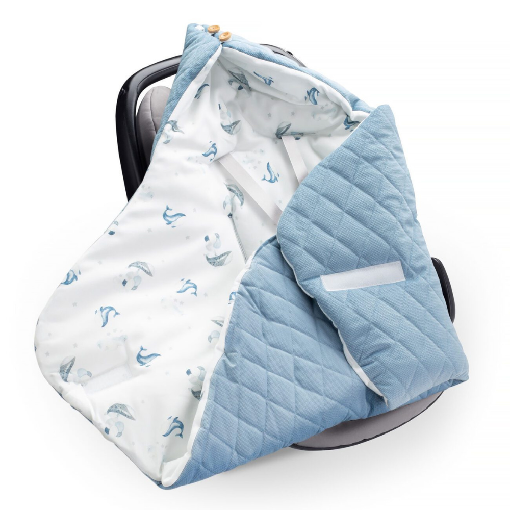 En härlig omlott för bilbarnstolen från YOSOY, tillverkad på insidan av extremt mjuk bomullssatin och på utsidan av bomullsvelour som är behaglig att röra vid.