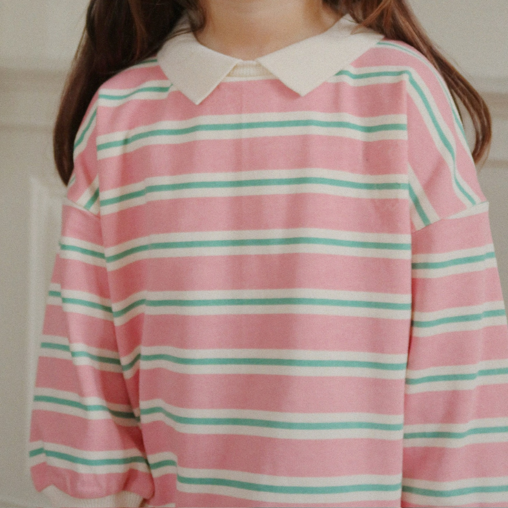 Denna barnpikétröja har en avslappnad, sweatshirtinspirerad passform med krage, sänkt axellinje och bekväma ribbade kantband.