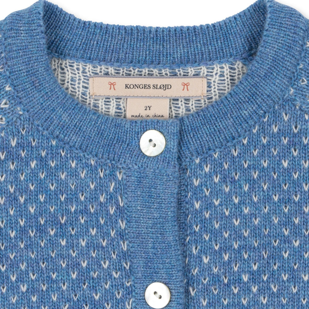 Diskreta pärlemorknappar bidrar till den unika charm och mjukhet som kännetecknar Konges Slojd-produkter.