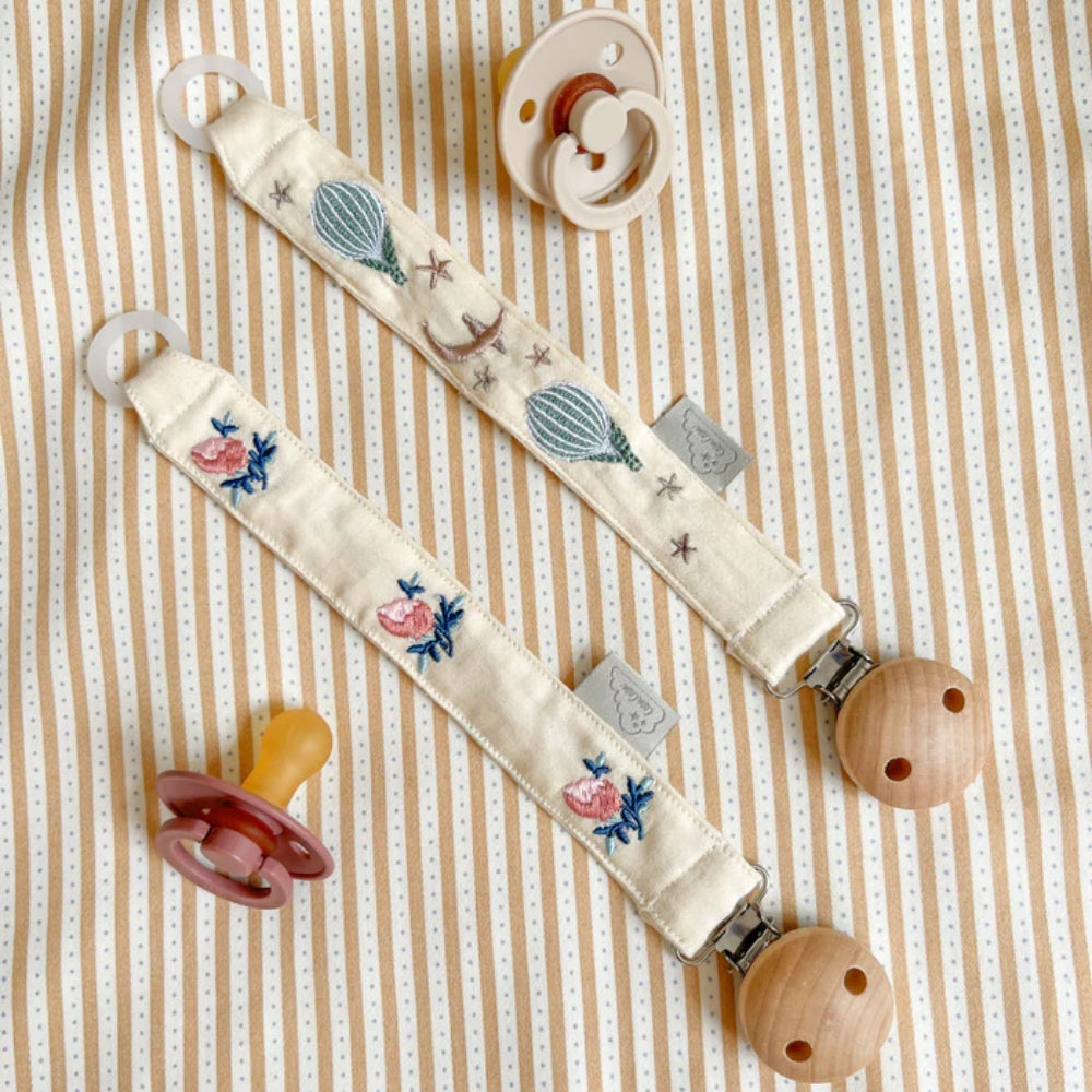 Cam Cam Copenhagen nappkedja är en praktisk och stilren lösning som ser till att din babys napp alltid finns inom räckhåll utan att ramla på golvet.