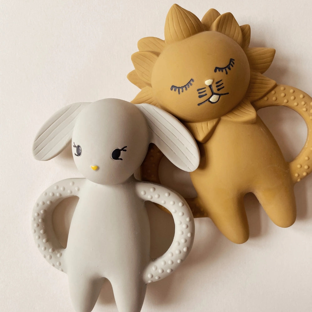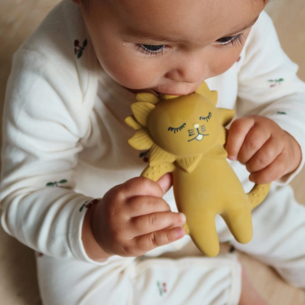 Den lejonformade bitringen av naturgummi ger ditt barn lindring när det är dags för tandväxt.