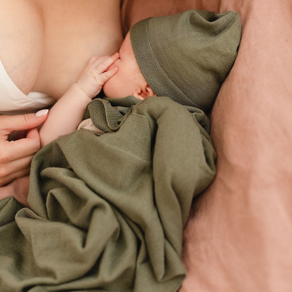 PUUKI Mysigt merinoset för bebisar i olivgrönt