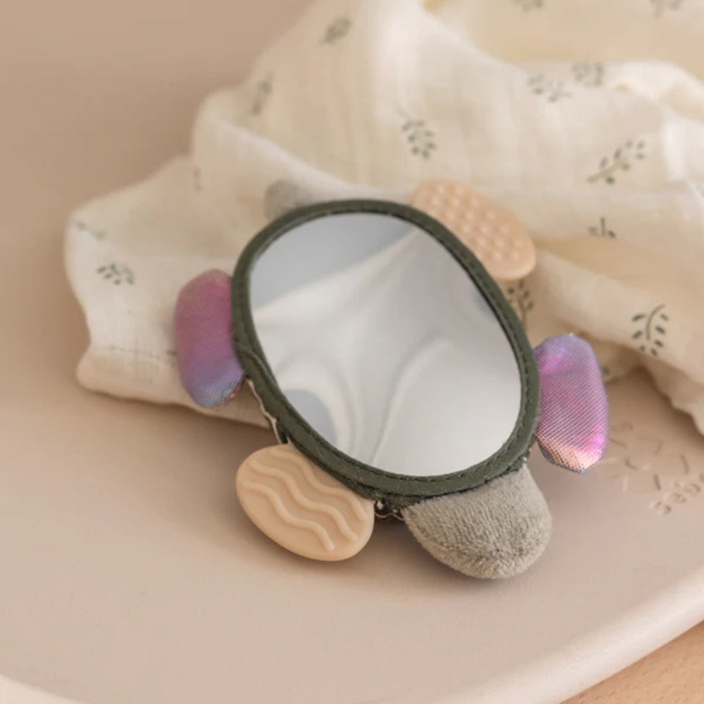 Med olika texturer, ett mjukt skramlande ljud och en säker spegel på magen ger leksaken massor av spänning från de första månaderna i livet.