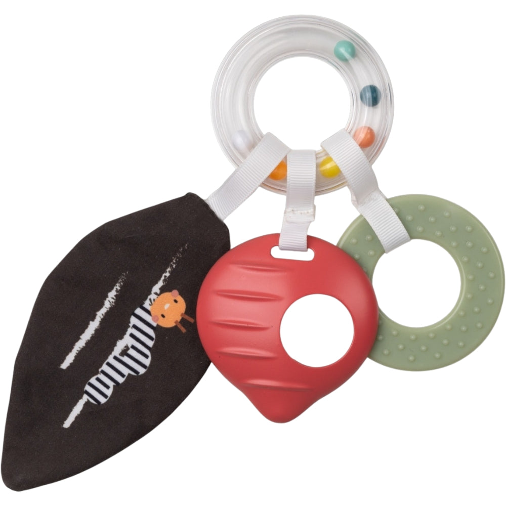 Skallra med mjuk bit och prasslande blad – uppmuntrar lek och lindrar tandvärk