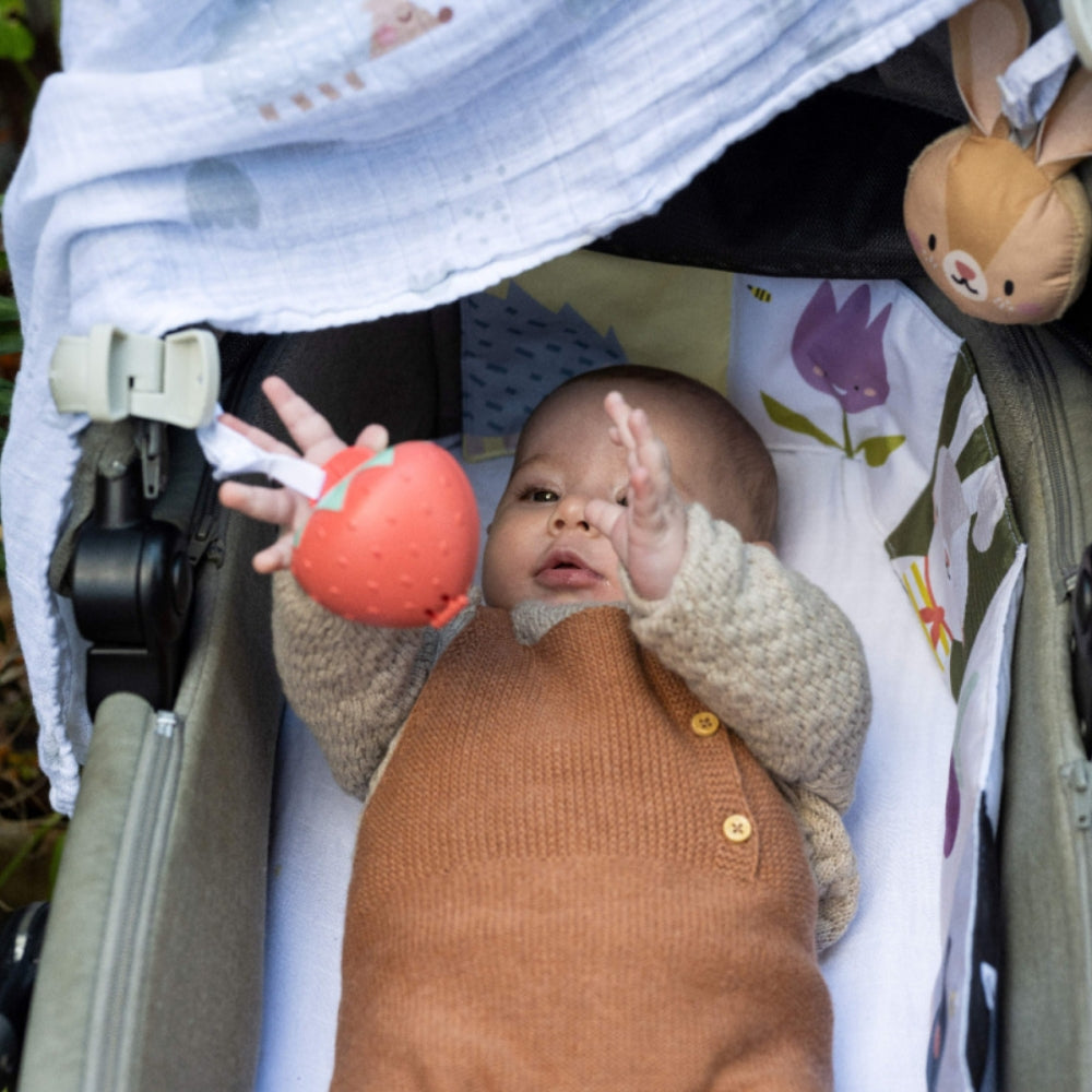 Setet är utformat för utomhusäventyr och stöder utvecklingen av barnets visuella stimulans, sinnen och emotionella intelligens från de första dagarna i livet.