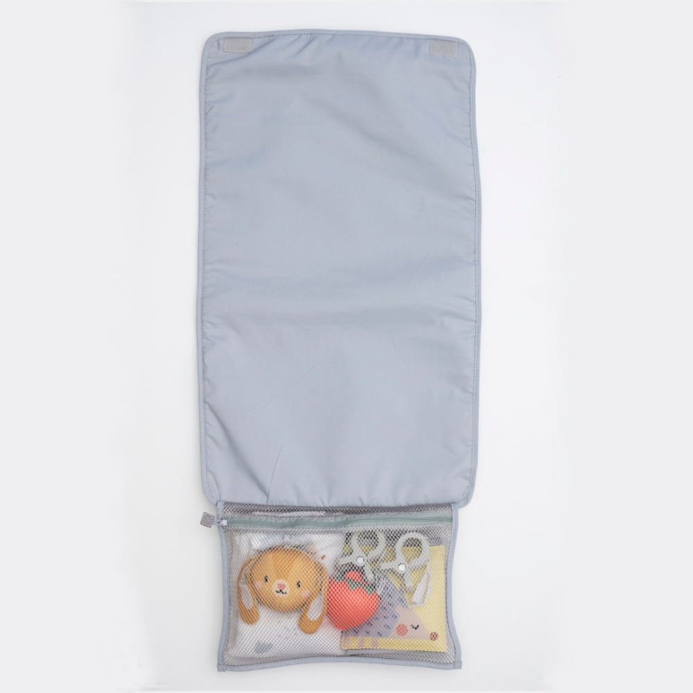 Skötunderlägget på 62 x 50 cm kan vikas ihop till en kompakt väska för enkel förvaring och transport.