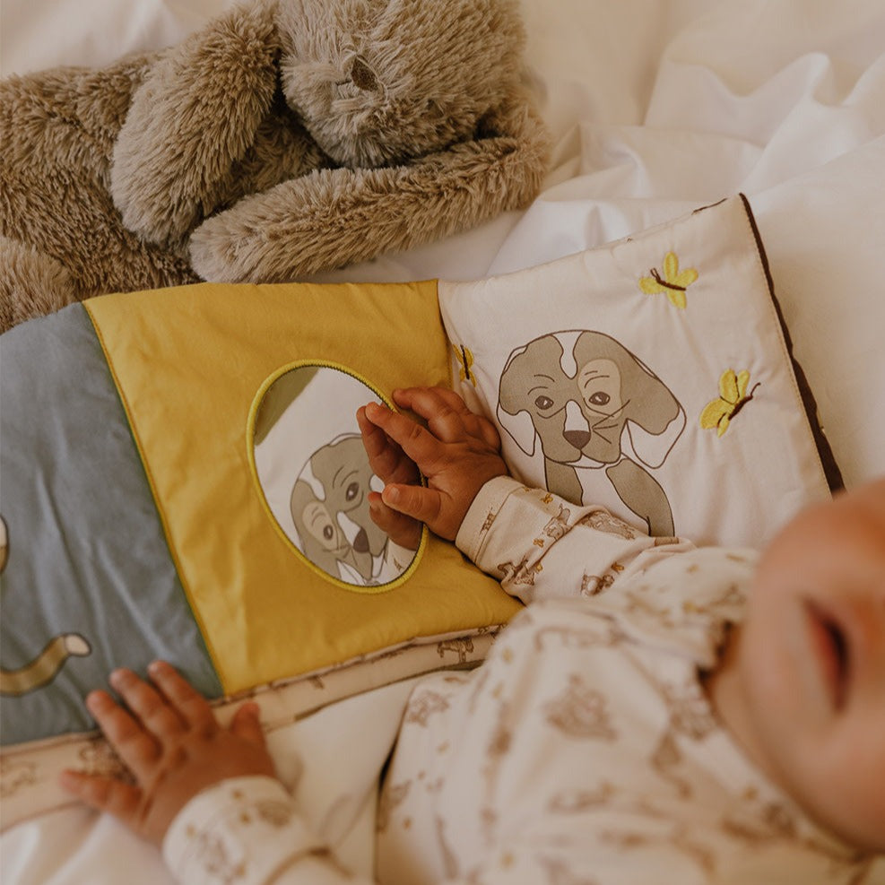 Babyboken från Liewood är ett utmärkt sätt att utveckla ditt barns kognitiva och sensoriska förmågor från tidig ålder.