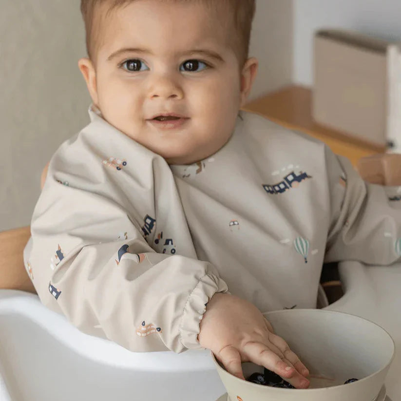 Haklappen med ärmar har utformats så att ditt barn kan njuta av maten utan att kläderna blir smutsiga.