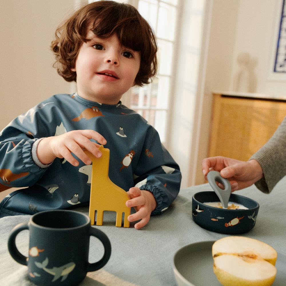 Liewood-haklappen med ärmar är lätt att rengöra – torka bara av den med en trasa eller skölj den under rinnande vatten.