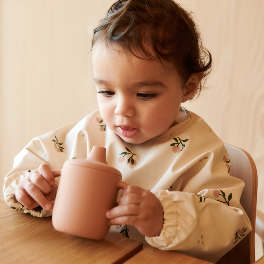 Liewood haklapp med ärmar har ett vackert beige persikomotiv.