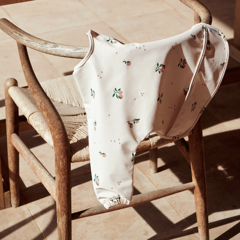 Liewood haklapp med ärmar Peach / Sea shell mix är extremt praktisk och kommer att hålla ditt barns kläder torra och rena.