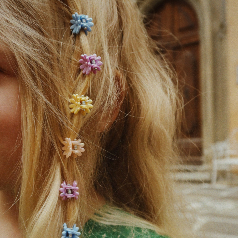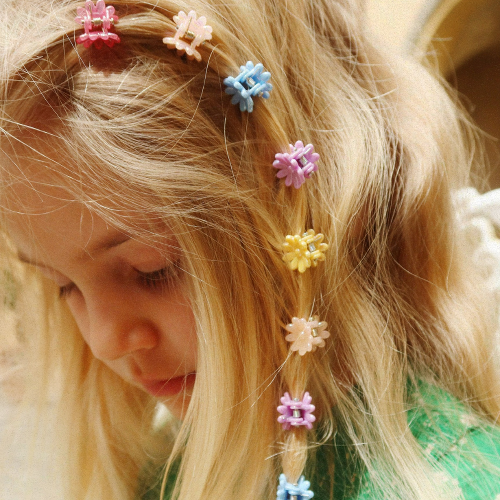 Setet med miniblommor är perfekt för både frisyrer som behöver göras flera gånger samtidigt och för fina, subtila frisyrer.