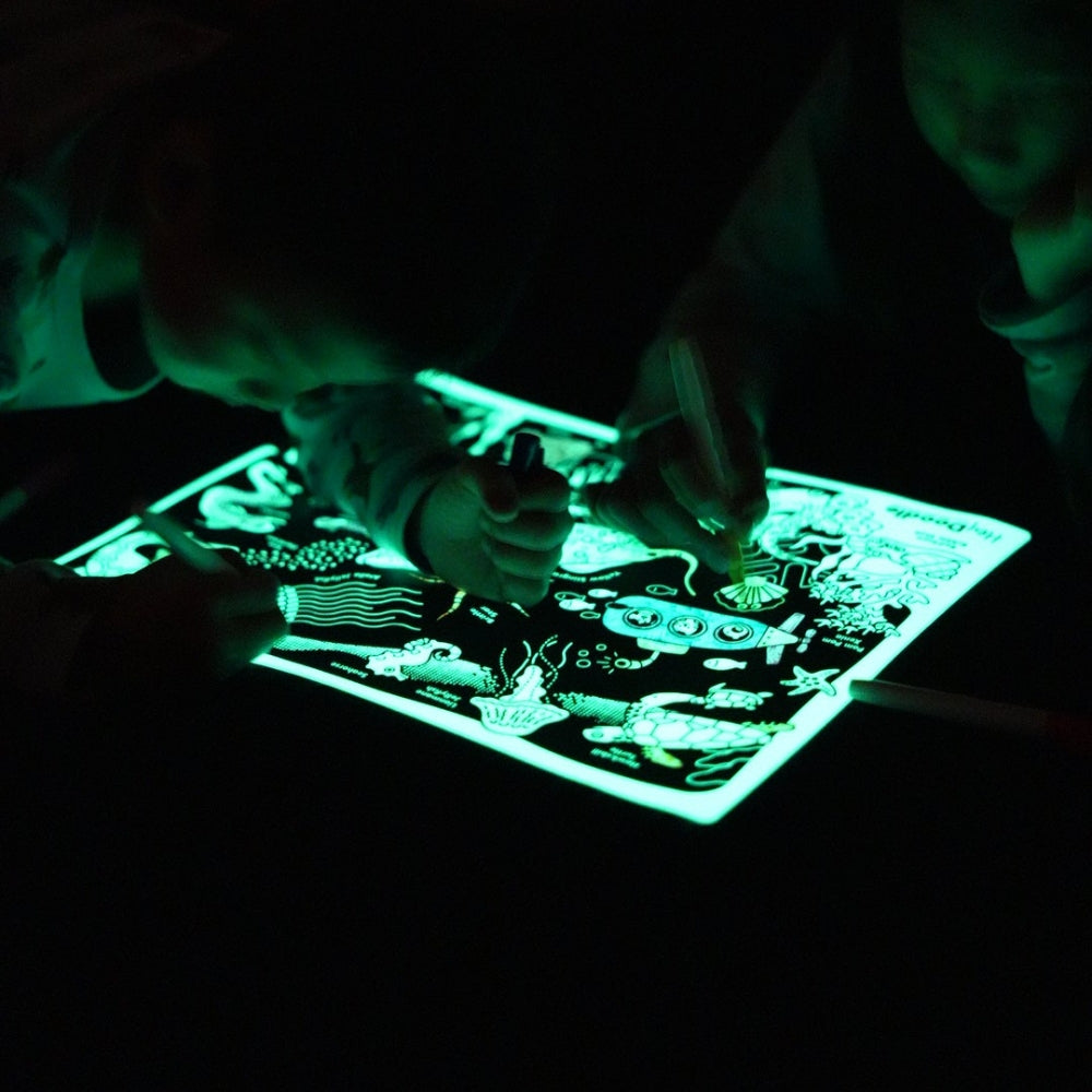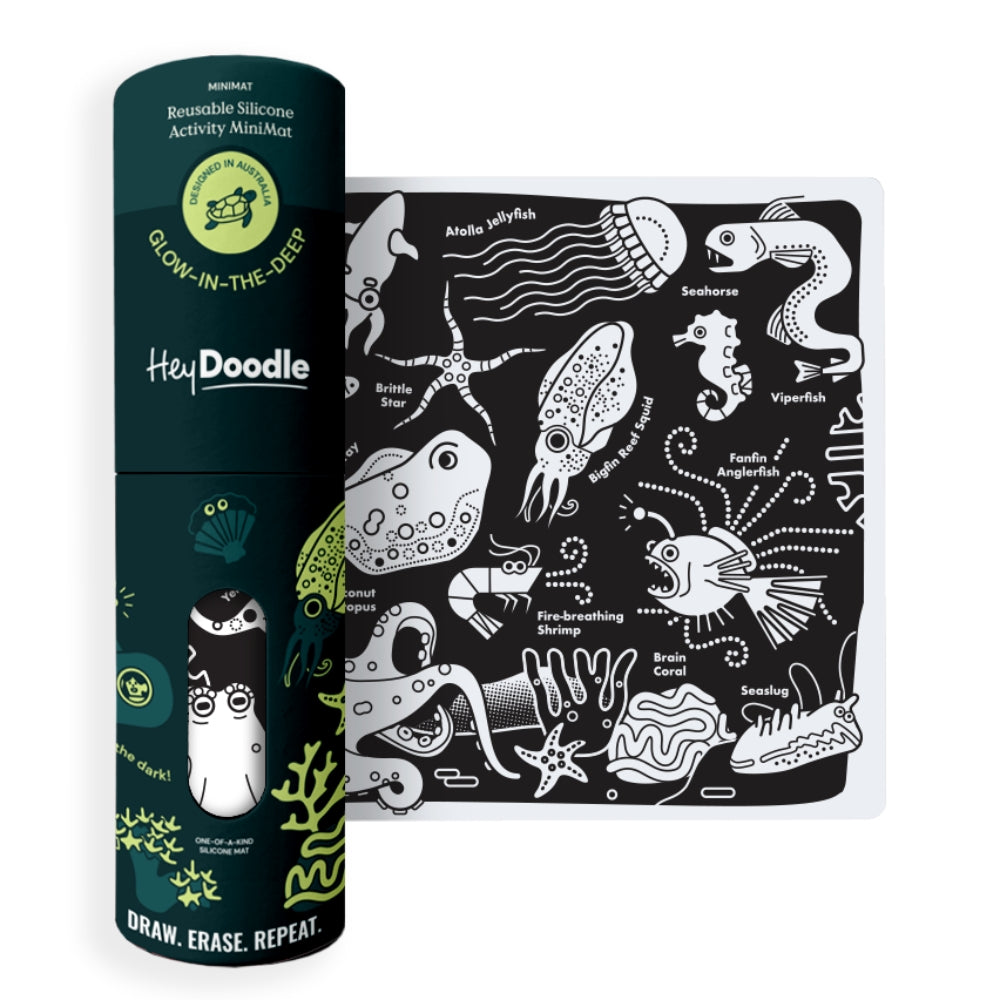 HeyDoodle Glow-in-the-Dark Stor A4-färgmatta i silikon – Sea Deeps