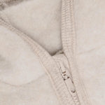 Modellen har en praktisk rund huva, långa ärmar och mjuka ribbade kanter vid öppningarna för att hålla kylan ute.