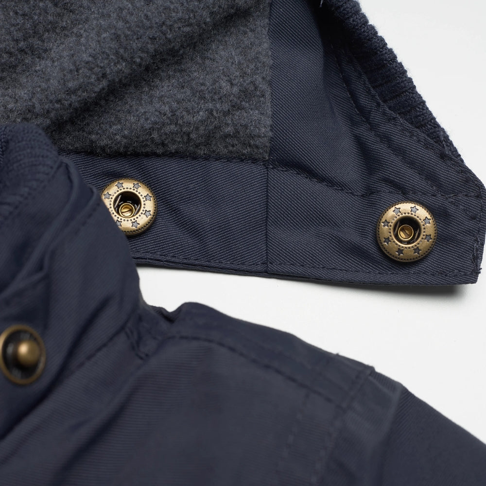 Dessa inkluderar en dubbel dragkedja med hakskydd, en avtagbar huva med tryckknappar och en dragsko i nederkanten för perfekt passform.
