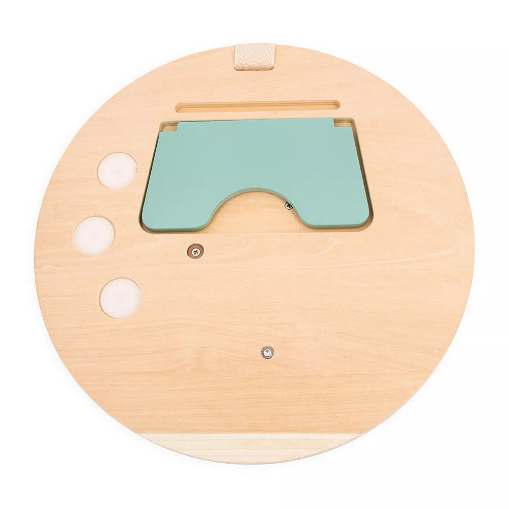 Barnens manipuleringsbräda är utrustad med en bollslinga, roterande hjul, speglar och andra rörliga element och utvecklar motorisk koordination, finmotorik och logiskt tänkande.
