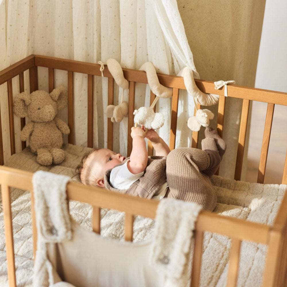 Jollein aktiveringsspiral från Elephant Tales-kollektionen är utformad för att stimulera barnets sinnen och stödja dess utveckling från de första levnadsmånaderna.