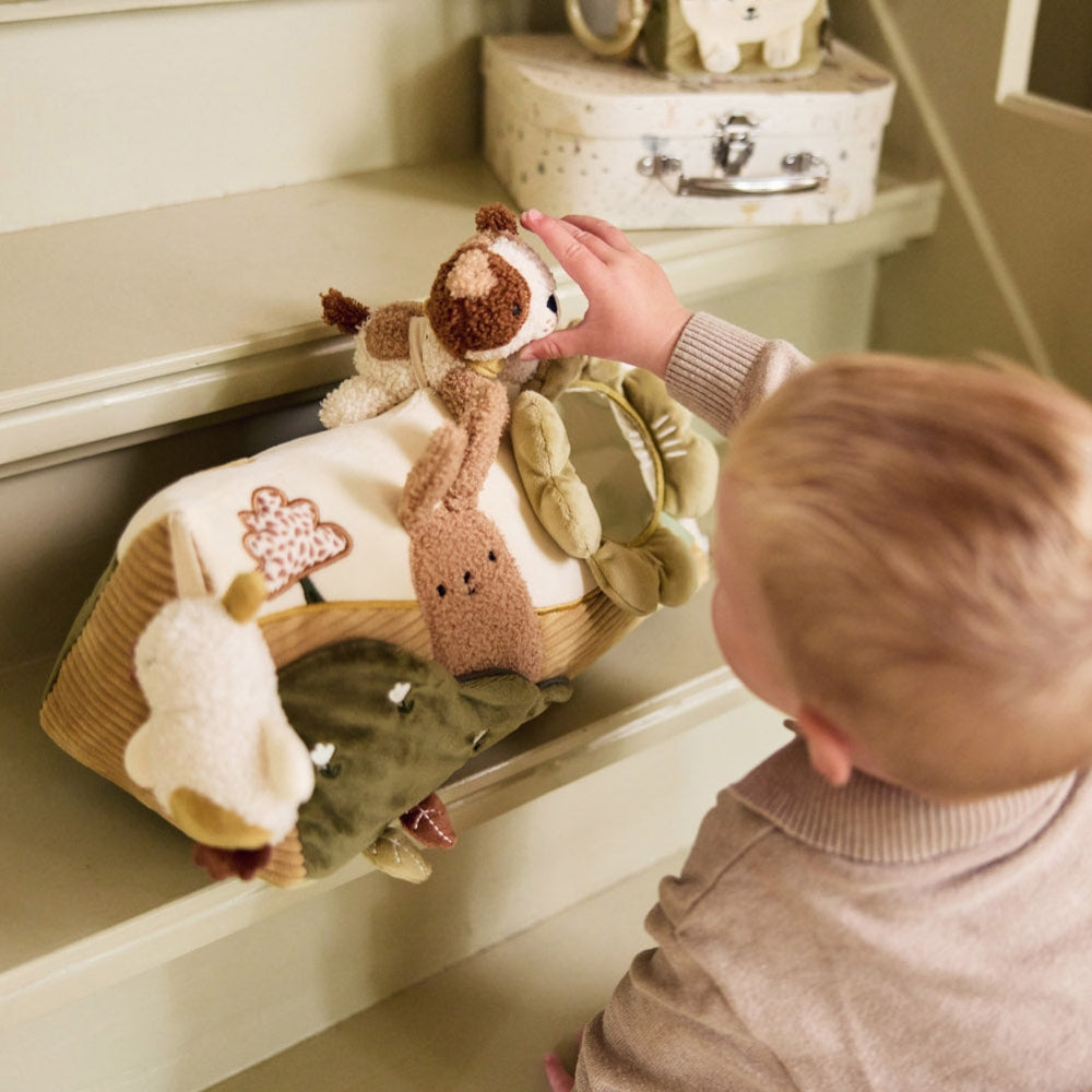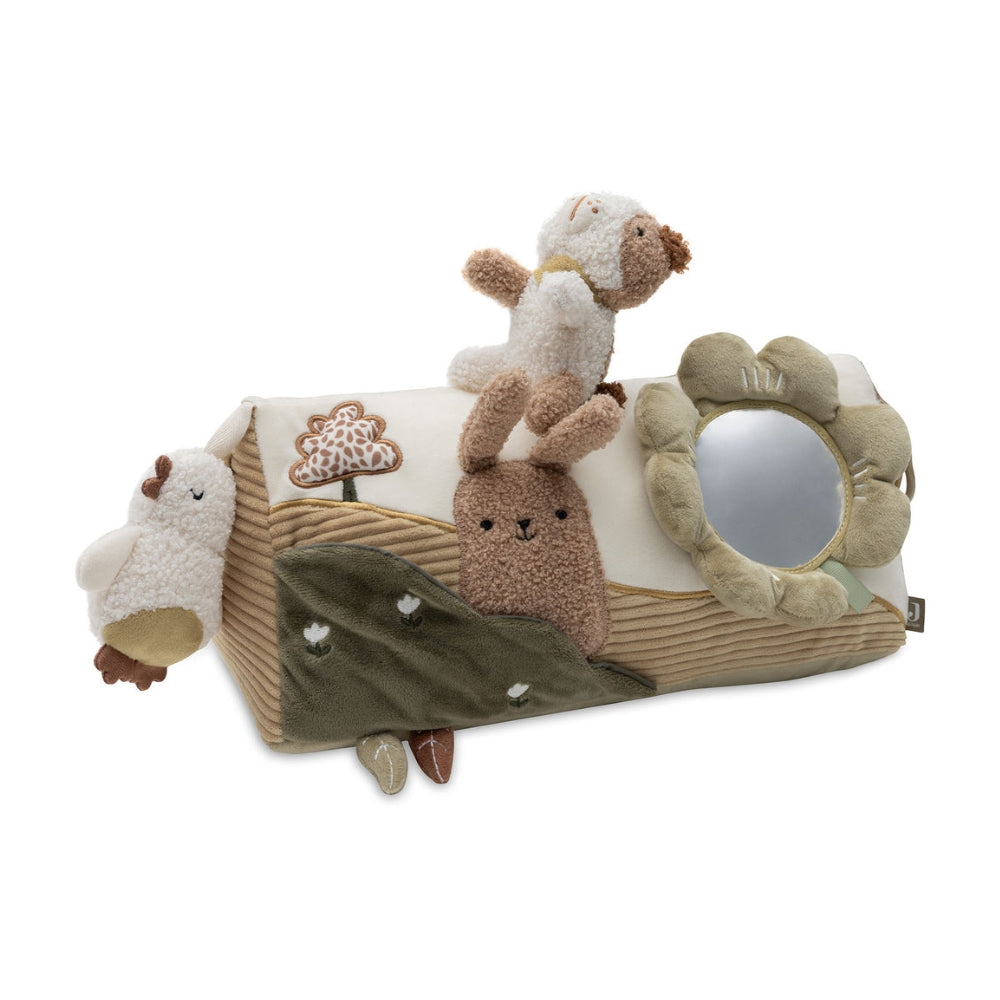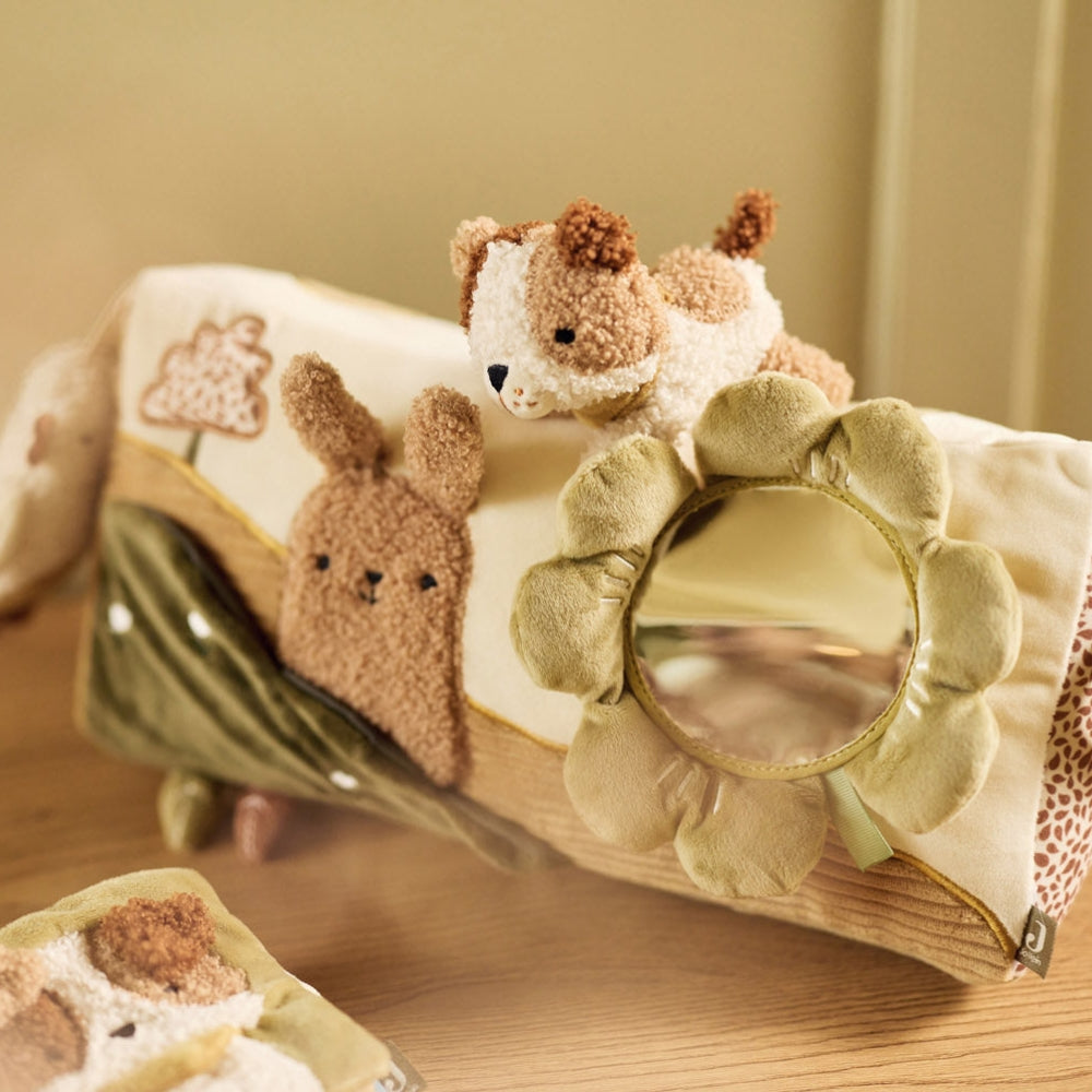 Leksaken är utrustad med en mängd olika aktiverande element, inklusive en spegel som är idealisk för lek på magen och uppmuntrar barnet att lyfta huvudet och titta på sin spegelbild.