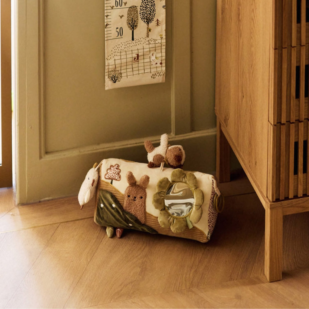 Den pedagogiska triangeln från Jollein från Tiny Park-kollektionen är en vacker sensorisk leksak som är perfekt för daglig lek i lekhagen eller på mattan.