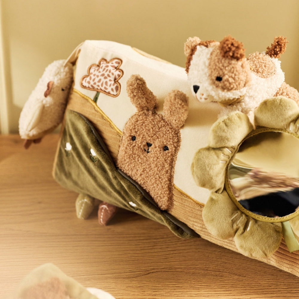 Varumärket Jollein har lagt stor vikt vid trevliga detaljer, t.ex. de broderade hund- och kaninmotiven, som drar till sig det lilla barnets uppmärksamhet och ger leksaken en särskilt glad karaktär.