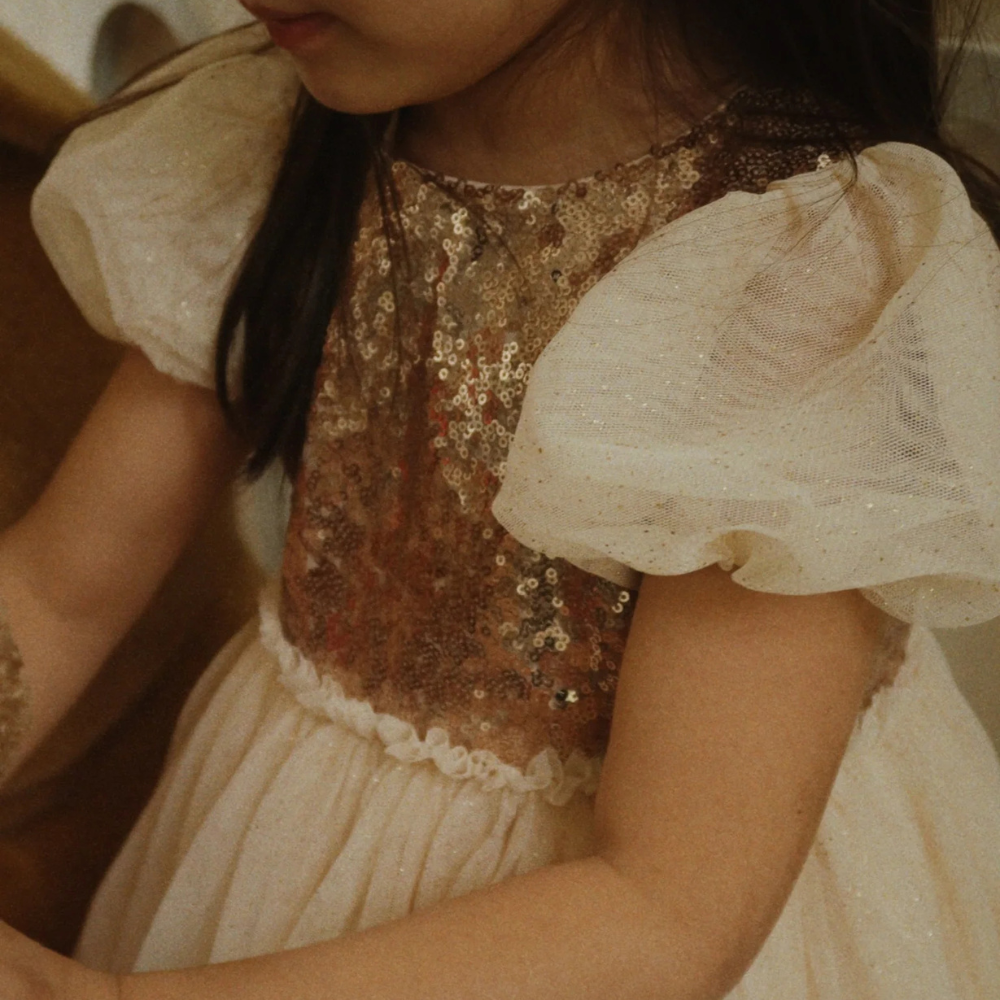 Barnklänning med paljettöverdel och lager på lager-kjol i tyll från Konges Slojd.