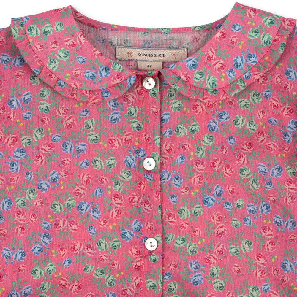 Konges Slojd-blusen för flickor har en klassisk krage och diskreta tygklädda knappar och utmärker sig genom sin tidlösa stil och sin känsla för detaljer. Det naturliga, ekologiska tyget är skonsamt mot barnets hud och samtidigt miljövänligt.