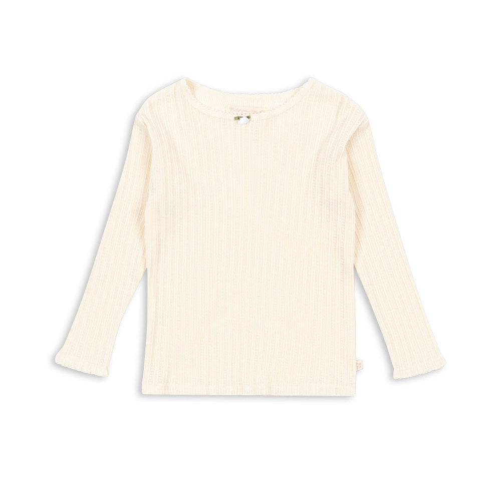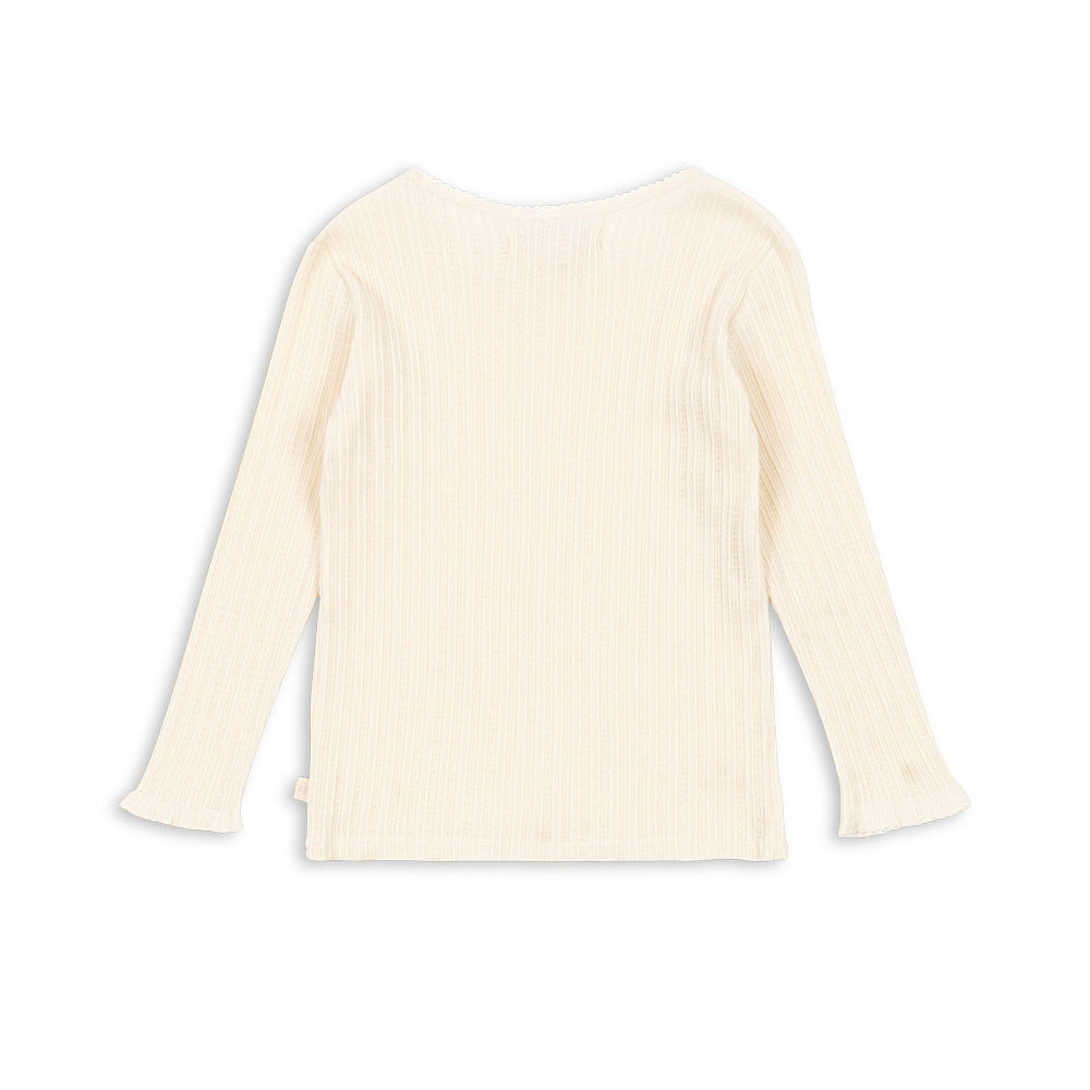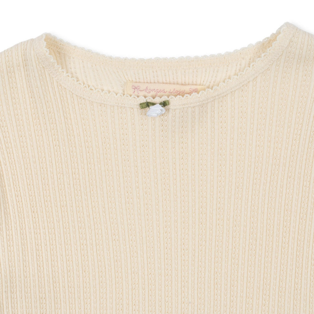 Konges Slojd flickblus är vävd i ett klassiskt ribbmönster, vilket ger den elasticitet och gör att den sitter bra.