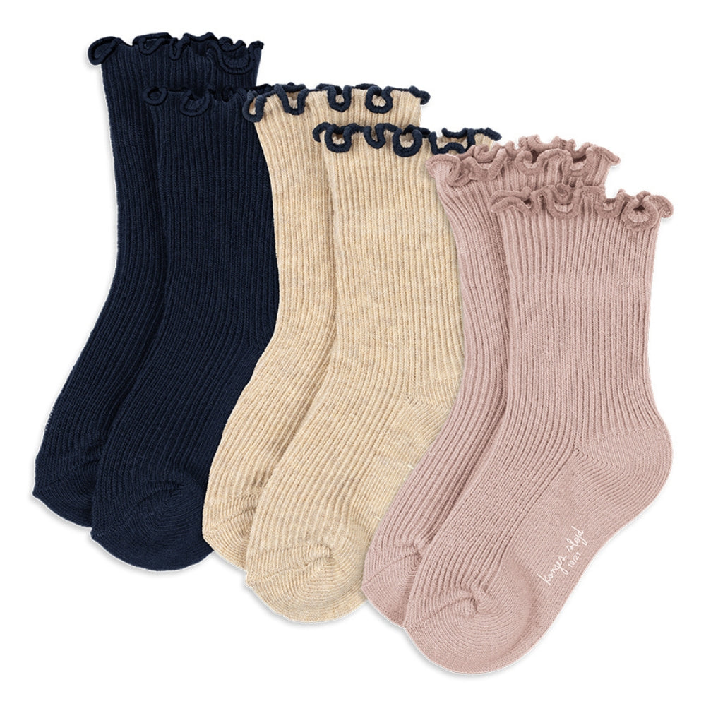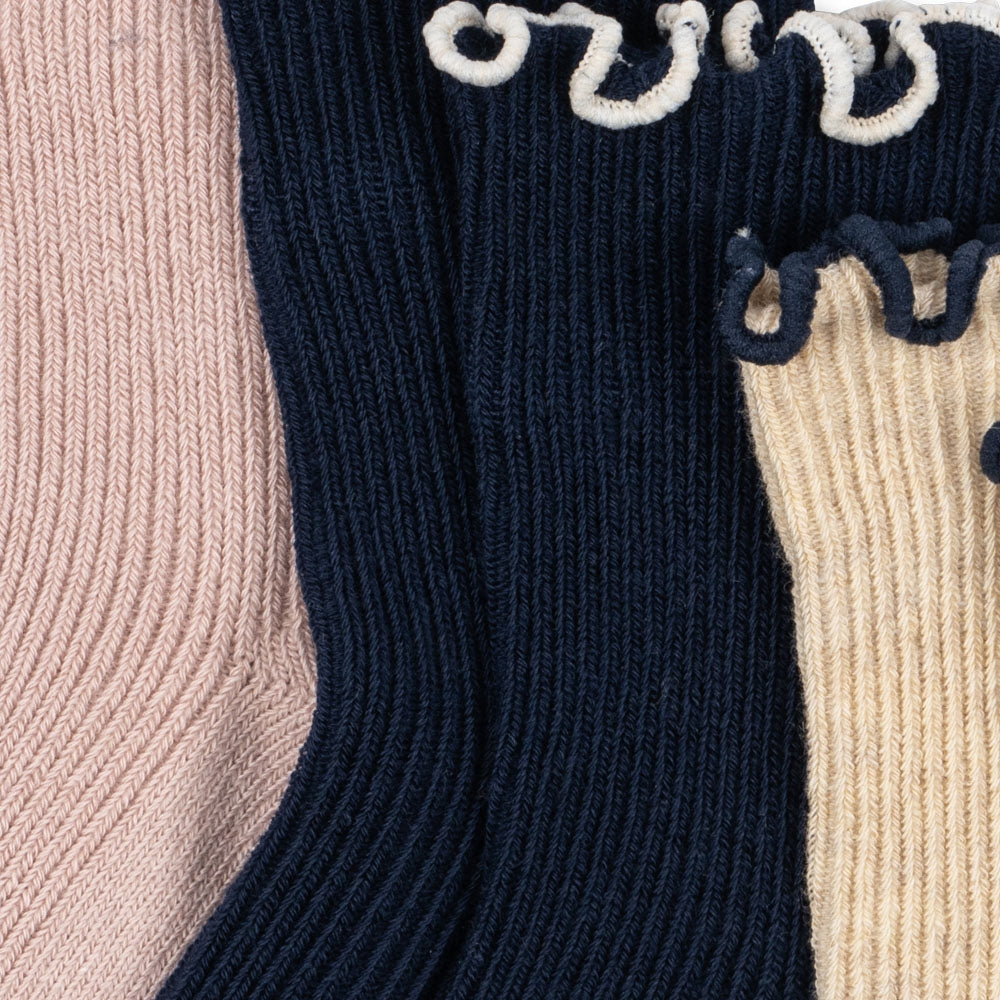 Konges Slojd Strumpor för flickor Frill Navy/Cream/Blush 3-pack
