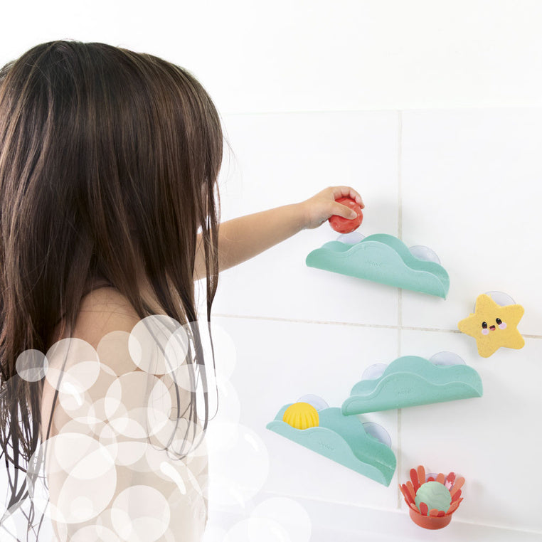Badbanan med bollar från Janod är en unik leksak som förvandlar det dagliga badet till ett spännande äventyr.