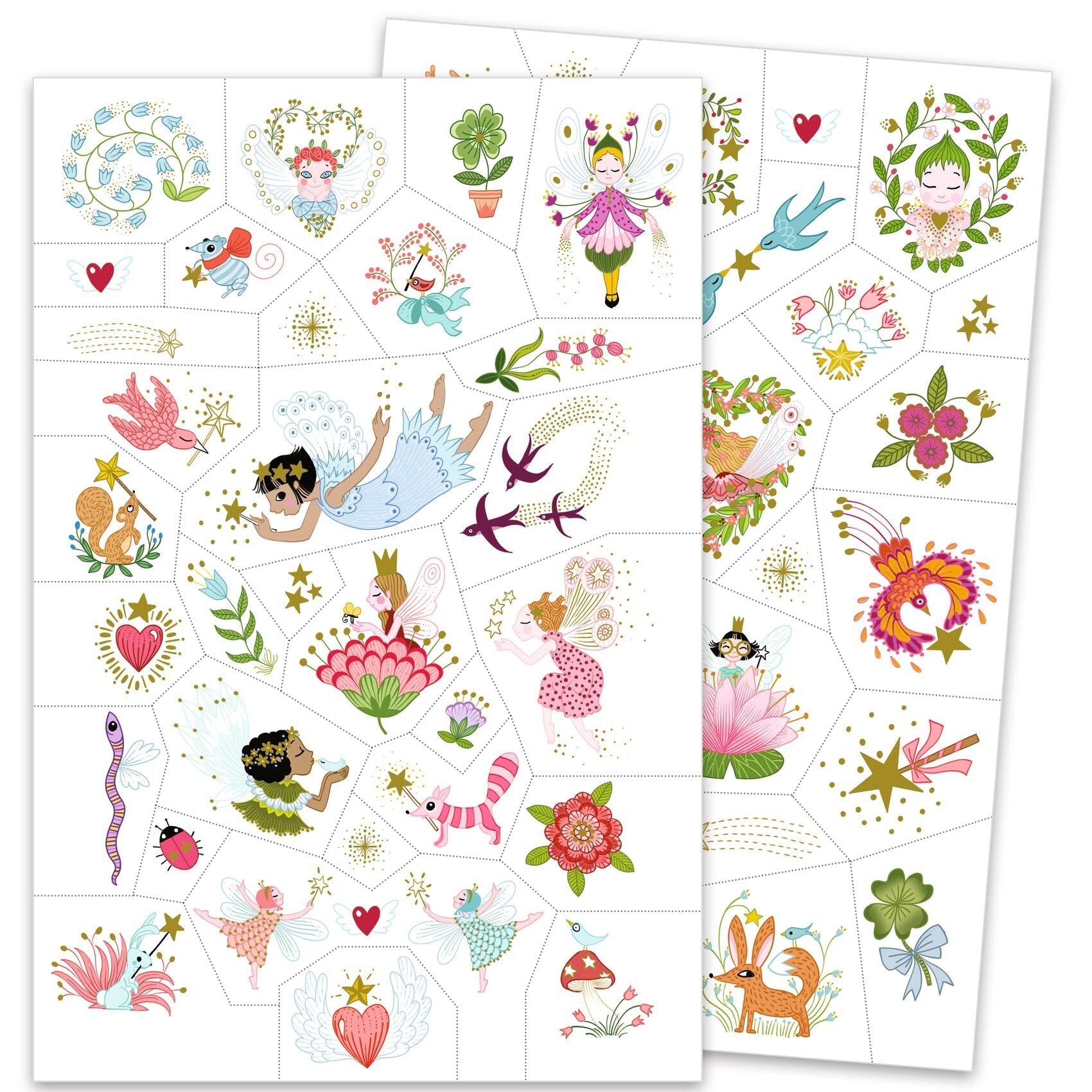 Detta set innehåller två ark med vackra Fairy Friends-tatueringar från Djeco.