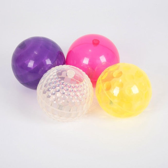 För att göra leken ännu roligare och spännande innehåller varje boll ett färgat LED-ljus som lyser i cirka 1200 blinkcykler.